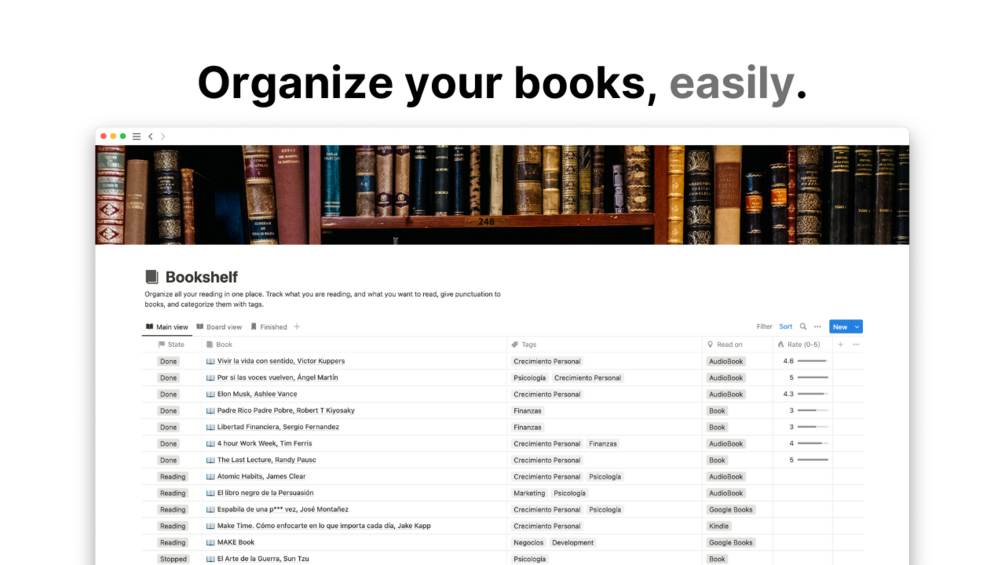 For those who love reading, this notion template is for you. A simple way to manage the books that you've read, those you're reading, and books that you want to read in the future.