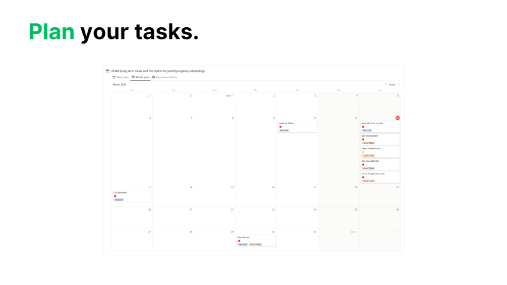My template is designed to be intuitive and user-friendly, allowing you to quickly and easily create new tasks, assign due dates and set priorities. It also helps you to categorize your tasks into different tags, making it easy to focus on specific areas of your work.